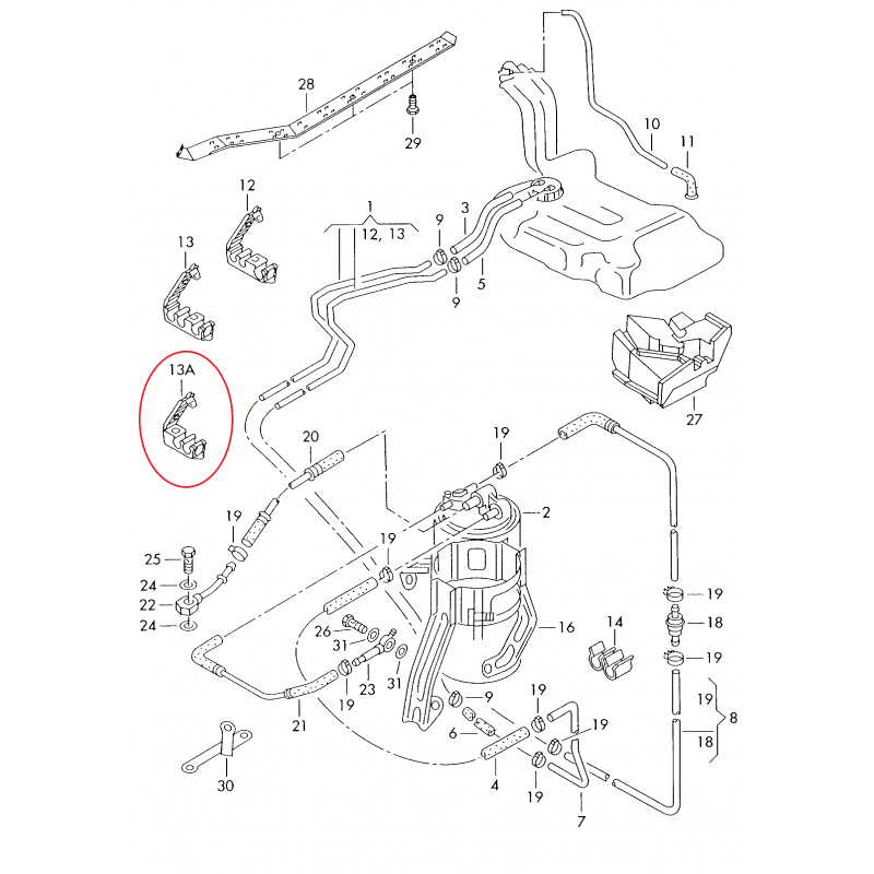 Audi A4, A6 degvielas caureles stiprinājums 8D0201190B
