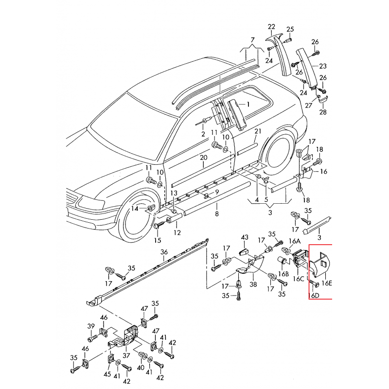 Audi A3 97-03 moldings R 5D, 8L4854862 01C